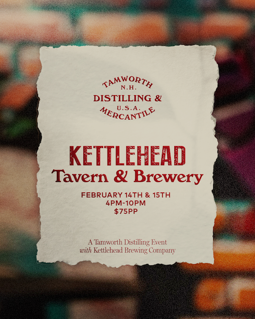 Kettlehead Tavern and Brewery in Meredith will be offering a delicious four course dinner on February 14th & 15th paired with Tamworth Distilling cocktails! Tamworth Distilling will be onsite 2/15 from 5pm – 7pm with spirit samples to enjoy!