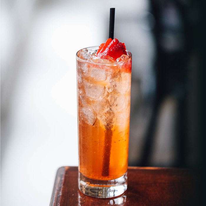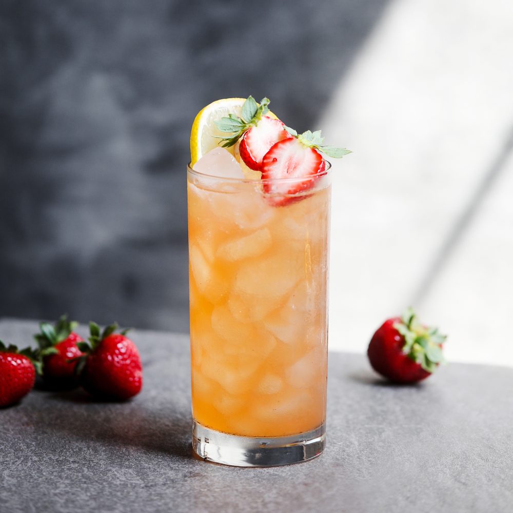 Built in glass with crushed ice. Garnish with a fresh strawberry. Enjoy!