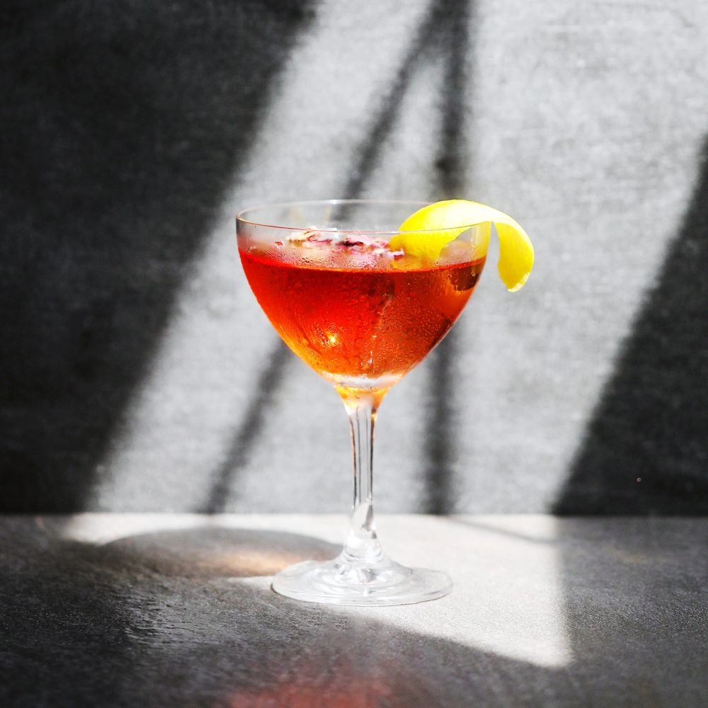 Add all ingredients to a shaker. Shake then double strain into a coupe glass. Garnish with a lemon twist and enjoy!
