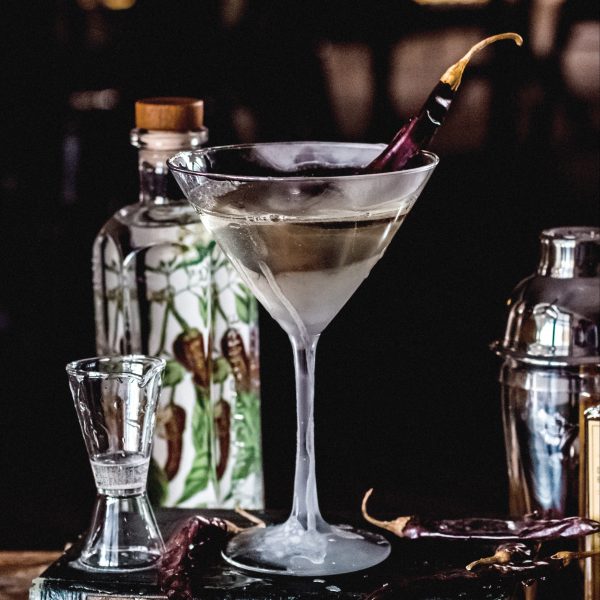 Add ingredients to a mixing glass and stir well. Once chilled and diluted, decant into a glass and garnish with dried chilis if you are drinking right away, or bottle and store in the freezer for an easy party drink. Lasts up to 7 days.