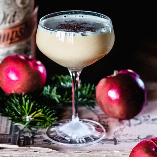 Add all ingredients into shaker with ice. Shake until chilled and strain into rocks glass. Add ice cube and garnish with apple slice or lemon peel.