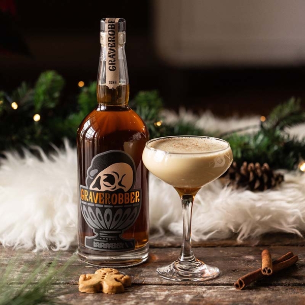 Add Graverobber and Eggnog to cocktail shaker and shake for 15 seconds. Strain into couple glass and garnish with freshly grated nutmeg.