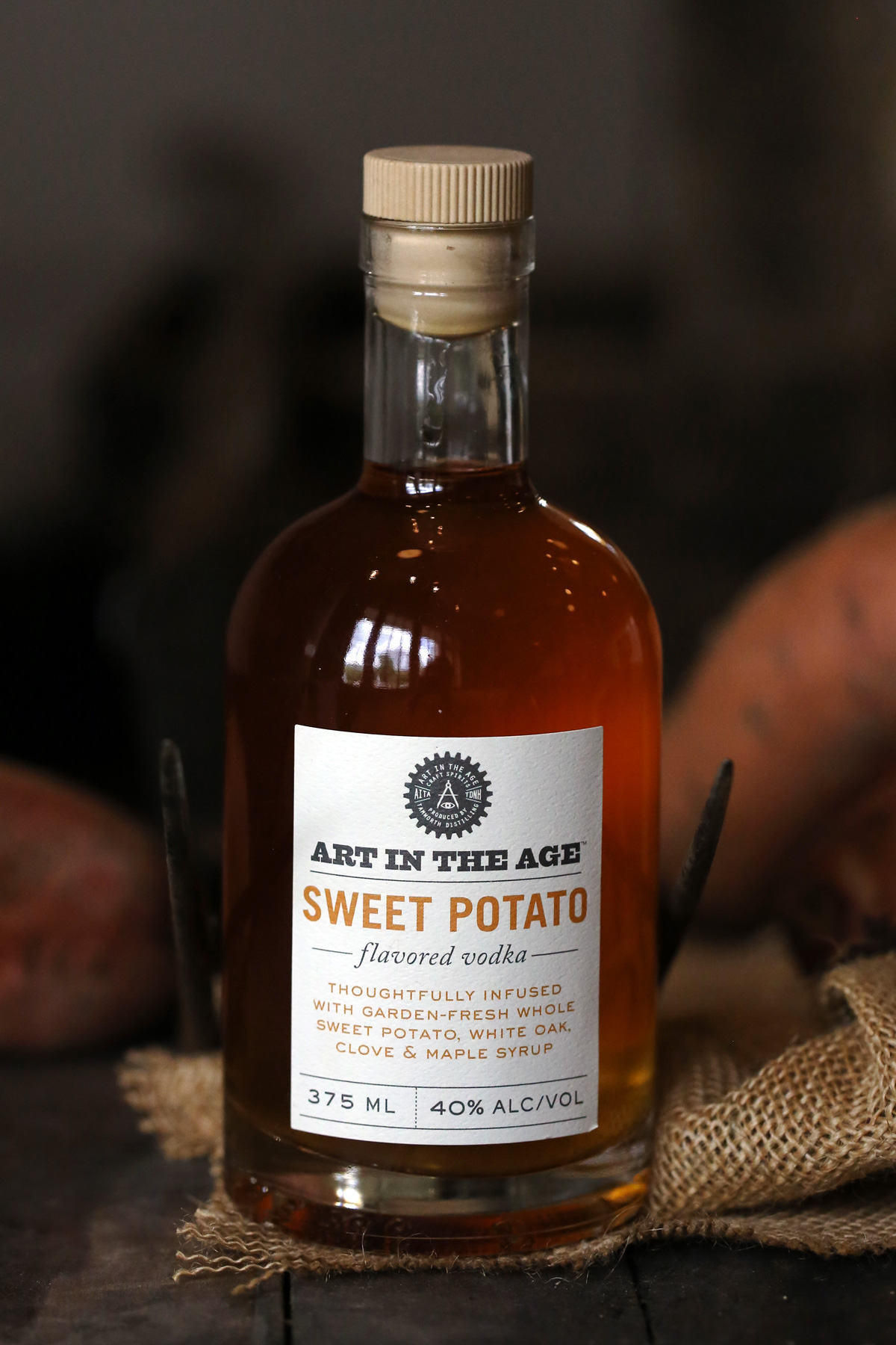 Our Art in the Age Sweet Potato Vodka is a rich blend of caramel, butterscotch, and vanilla notes from toasted white oak chips. The sweet potato pie-like qualities are derived from the addition of clove, maple syrup, and a touch of salt. Nearly all of the spirit’s sweetness is a function of the sweet potato itself.
